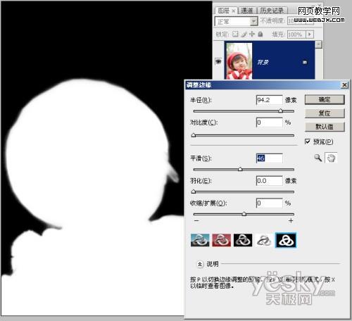 調整滑塊區:使用滑塊改變選區的邊緣,使它更加軟或者硬、平滑或者細致,也可以改變選區的擴展與收縮量,使它更小或者更大,最終符合我們的要求。