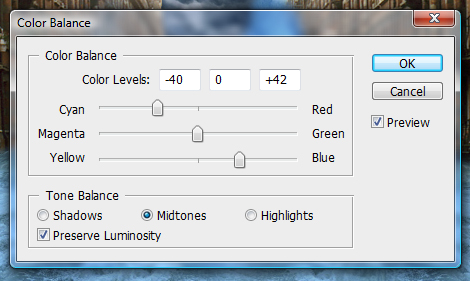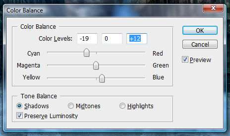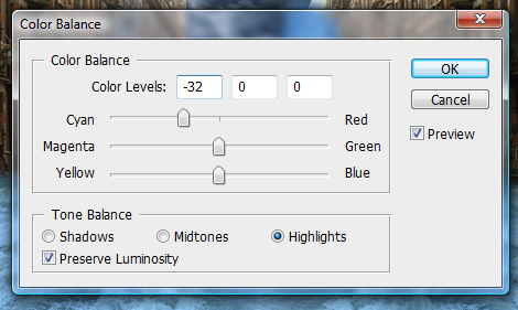 現在我們把大水所有的圖層都合并,然后調整色彩平衡。