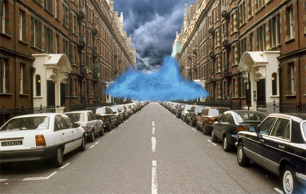 然后用多邊形套索工具把圖片中的天空選中,然后按delete鍵刪除天空,之后把我們的新天空(烏云)換進來。