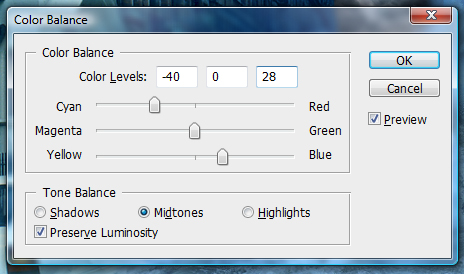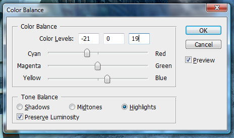 然后我們選擇背景圖層,調整色彩平衡,設置如下。