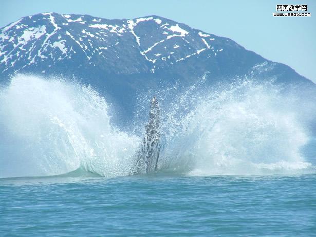 現在看上去效果并不是怎么好看,下面我們再找一個波浪的圖片,然后放到圖片的中間,我們用一個大的柔筆刷刪除掉不需要的部分。