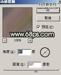 1、打開(kāi)原圖素材,按ctrl + j 把背景圖層復(fù)制一層,然后對(duì)副本執(zhí)行:濾鏡 > 模糊 > 動(dòng)感模糊,參數(shù)設(shè)置如圖1,效果如圖2。