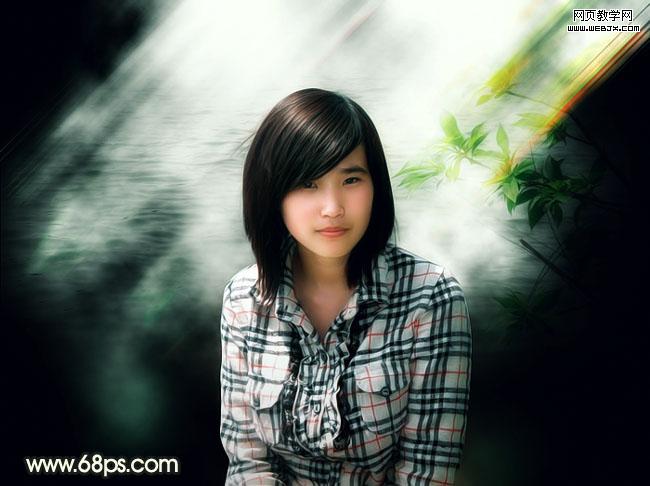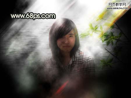 原圖素材凌光閃爍的湖面以及岸上的翠綠小樹(shù),讓人想起來(lái)江南獨(dú)特的水鄉(xiāng)風(fēng)情。特意在處理圖片的時(shí)候在背景部分加上了一些類似雨霧蒙蒙的效果,以此來(lái)加強(qiáng)水鄉(xiāng)的感覺(jué)。
