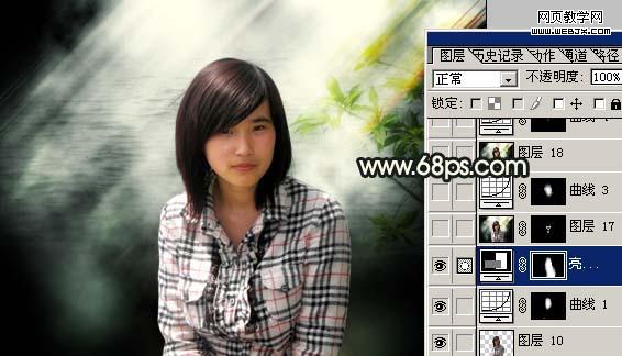 9、創(chuàng)建亮度/對(duì)比度調(diào)整圖層,參數(shù)設(shè)置如圖17,確定后只保留人物部分,其它地方用黑色畫(huà)筆擦掉,效果如圖18。