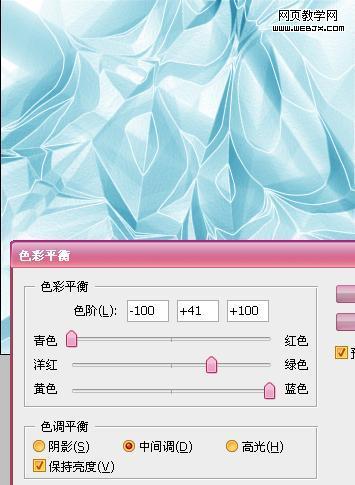 4.圖像/調整/色彩平衡,給冰上色,效果和參數如下:(顏色最重要選自己喜歡的)