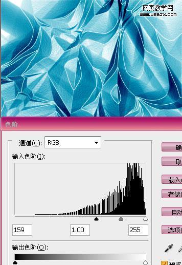 5.圖像/調整/色階,調整明暗立體感,效果參數如下:(一般都是調整到黑色的色階范圍,自己看著弄)