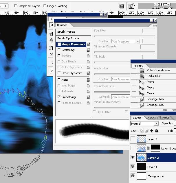 現在形狀比較抽象了,這里我們使之看上去更像冰山,使用涂抹工具繪制。