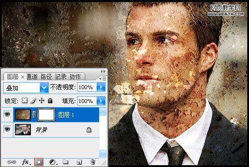 3、點擊圖層面板下方“添加圖層蒙版”按鈕,為紋理層添加蒙版。