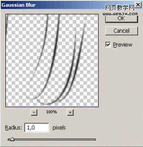 因為我們是用筆刷工具繪制每一根睫毛,我們想要讓繪制的睫毛邊緣變的更加平滑。所以,選擇“上睫毛”圖層,然后選擇“濾鏡-模糊-高斯模糊” 然后設(shè)置下圖的數(shù)值。