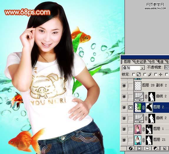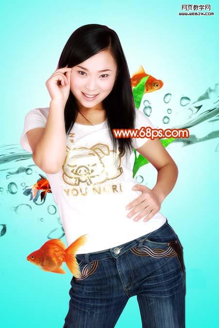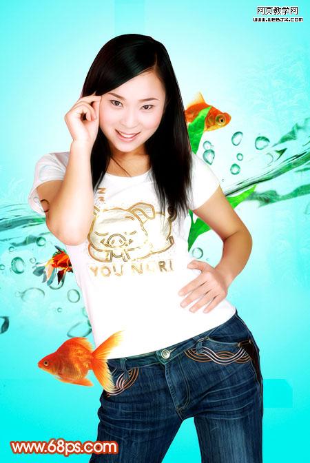 11、找一些金魚素材,摳出來后貼進來,效果如圖20。