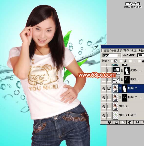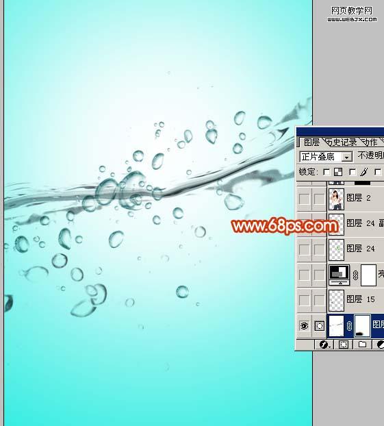 2、打開下圖所示的水珠素材,拖進來放好位置,把圖層混合模式改為“正片疊底”,加上圖層蒙版,用黑色畫筆擦掉多余部分,效果如圖4。