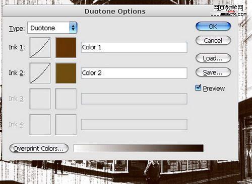再次改變模式image > mode > duotone,改變2種顏色,color 1: 5a3811;color 2: 665838并且調(diào)整下曲線
