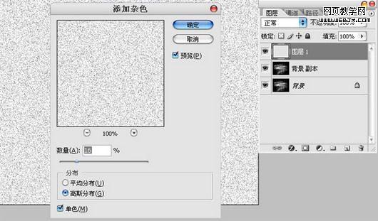 濾鏡=>雜色=>添加雜色,參數(shù)如下