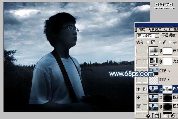原圖素材由于光線較暗,而且背對著光影。人物部分基本看不清楚。
