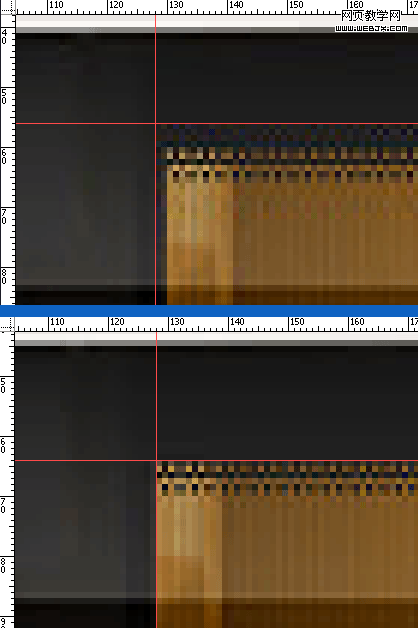 在第一個圖像里,微波爐的位置是隨機的,在保存第二個文件之前,我們把圖像按照eight-pixel grid來對齊。質量一樣都設置在55。讓我們把圖像放大看看(紅線標示出區(qū)塊的邊界)