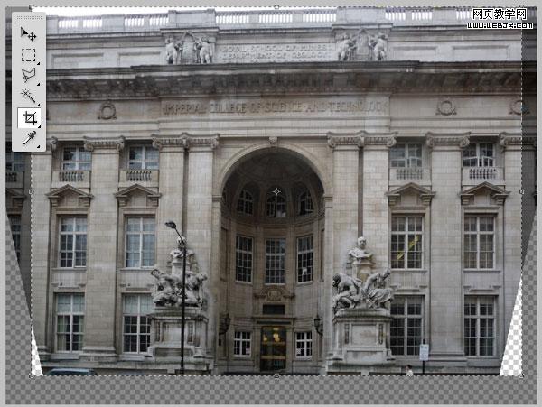 現(xiàn)在使用剪裁工具大概地選擇還有圖像的區(qū)域。我們必須使用克隆圖章工具修復(fù)透明區(qū)域。
