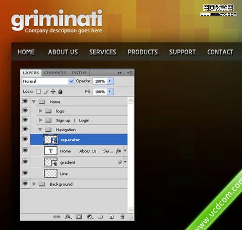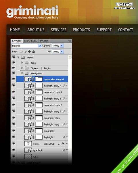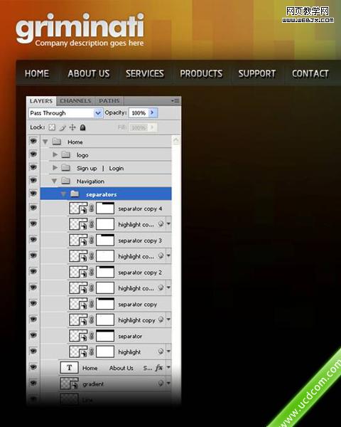 步驟19:選擇所有的“separator”和“highlight”層的圖層調色板和然后按ctrl + g 組名 “separators”