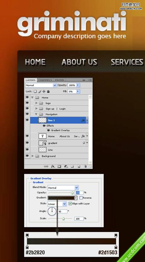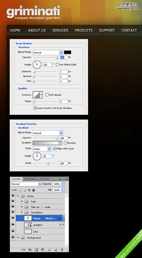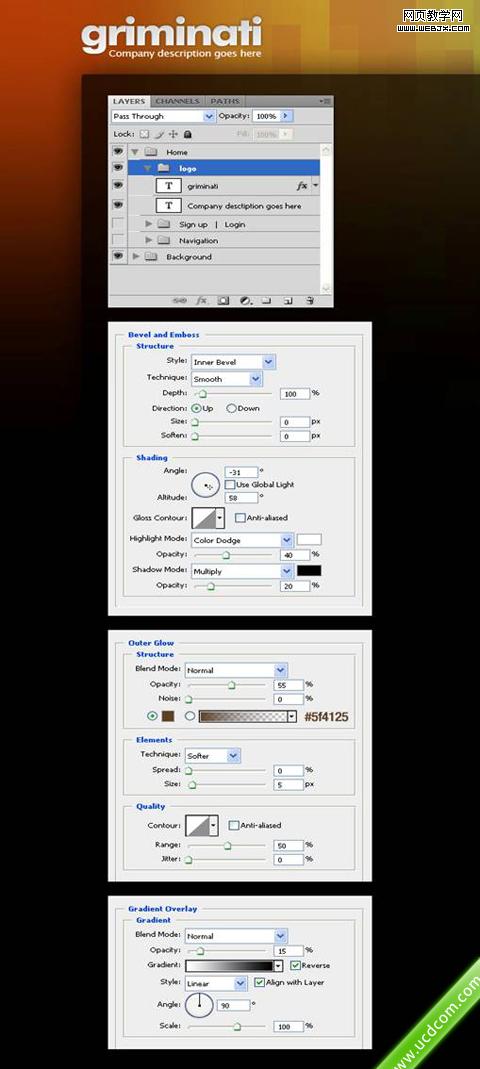 第7步:添加一個標志和口號創建一個新的層內的“標識”組。然后選擇文字工具(t)和寫的名稱布局使用顏色#f4f4f4 。雙擊該層,打開圖層樣式窗口的設置和使用的下列形象。然后創建一個新層和寫標語用的顏色#eeeeee 。
