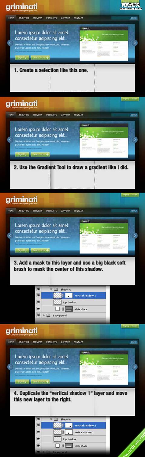步驟39:創建一個新層,使用矩形選框工具。然后使用漸變工具( g )#8f8f8f透明。這一層和使用黑色大軟刷掩蓋中心的陰影。設置不透明的這一層的30 % ,并將其命名為"vertical shadow 1."復制這一層(按ctrl + j )條,命名新層"vertical shadow 2" ,將它移到權利。