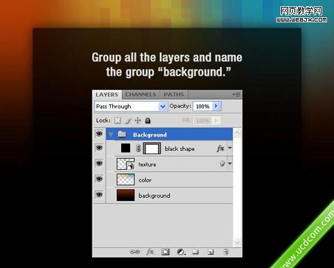 步驟5:使用組編制織您層按住ctrl鍵并選擇所有圖層您創建到現在,然后將它們組合(或control + g ) 。名稱為"background."