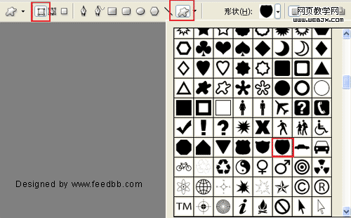 2. 選擇自定義形狀工具,從形狀庫里選擇下面的形狀,如圖所示: