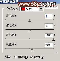 11、創(chuàng)建可選顏色調(diào)整圖層,參數(shù)設(shè)置如圖16,效果如圖17。