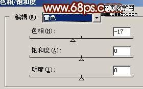 10、創(chuàng)建色相/飽和度調(diào)整圖層,參數(shù)設(shè)置如圖14,效果如圖15。