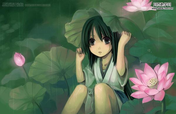 6、拖入荷花素材,圖層混合模式改為“正片疊底”。