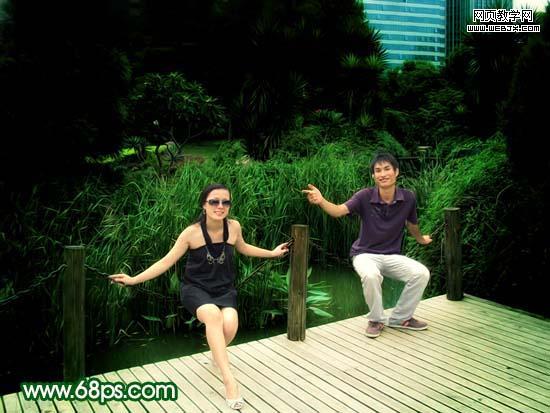 原圖素材基本上也是綠色的不過色調(diào)有點(diǎn)灰。調(diào)色的時(shí)候可以把背景部分調(diào)成純綠色,再適當(dāng)給人物部分調(diào)整下顏色即可。