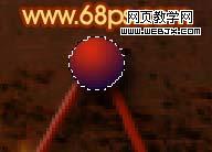 12、新建一個(gè)圖層,再斜線的頂端用橢圓選框工具拉一個(gè)小正圓,拉上深紅色到黑色的徑向漸變,如圖19,確定后適當(dāng)加點(diǎn)投影效果,如圖20。