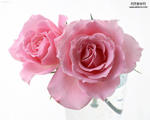 14、打開(kāi)下圖所示的玫瑰花素材,用鋼筆工具把大的玫瑰花摳出來(lái),適當(dāng)調(diào)整好顏色,拖進(jìn)來(lái)效果如圖23。