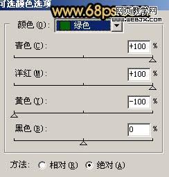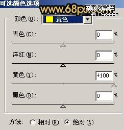 3、創建可選顏色調整圖層,對黃色及綠色進行調整,參數設置如圖4,5,效果如圖6。