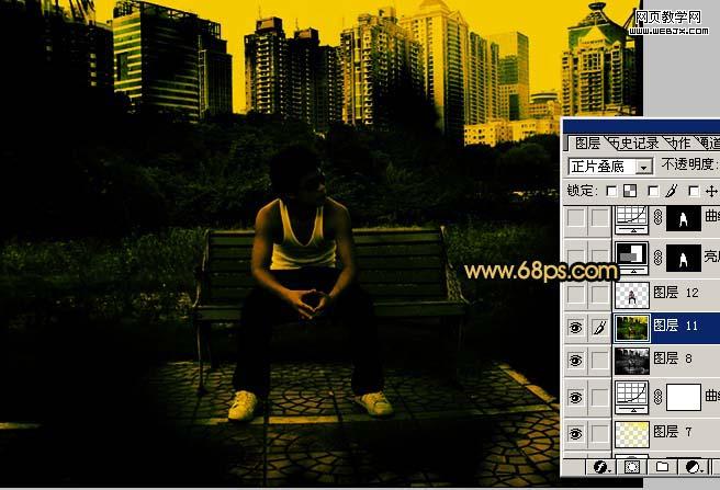 6、新建一個圖層,按ctrl + alt + ~ 調出高光選區,然后填充顏色:#f9f008,把圖層混合模式改為“正片疊底”,效果如圖11。