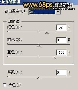 5、創建通道混合器調整圖層,對藍色進行調整,參數設置如圖9,效果如圖10。