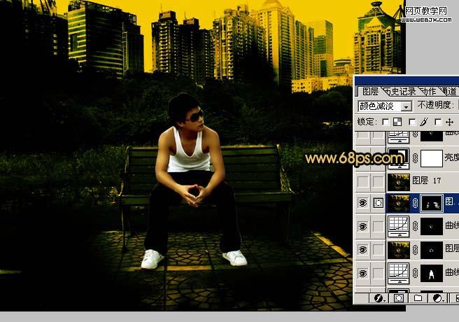 10、把剛才隱藏的圖層顯示出來,圖層混合模式改為“正片疊底”,效果如圖19。