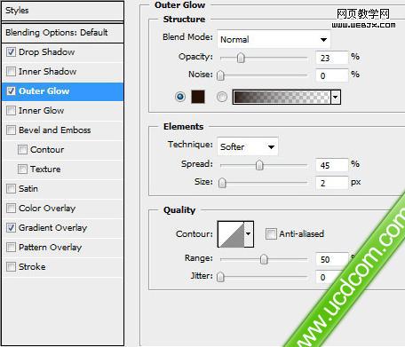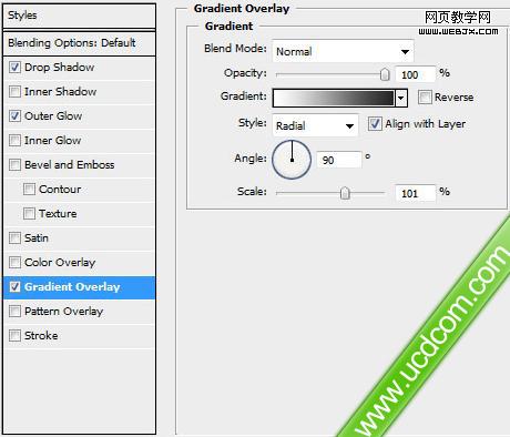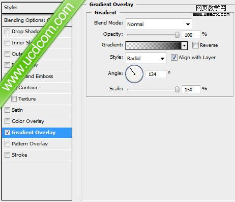 設置參數的未來表現作出了鼠標點擊層與我們合作的層次'調色板。 填寫0 % ,混合選項 “ > 漸變覆蓋