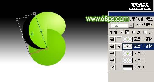 9、把圖層2副本的半個正圓復制一層,填充黑色,移到圖層2副本圖層的下面,按ctrl + t 適當調整下角度和位置,效果如圖14。