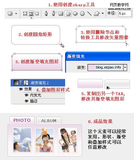 在web設計中,所有需要使用填充色塊的地方都盡可能使用矢量路徑+填充圖層來完成,這樣生成的填充色塊可以隨時隨地保持方便修改和無損形變。