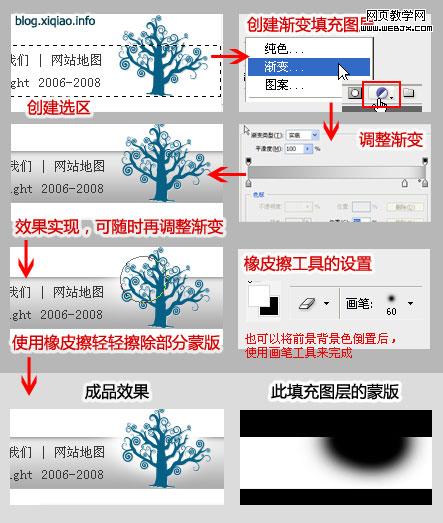 當需要為頁面上某個版塊添加淺灰色背景,在導航上使用長條型漂亮的漸變背景時,你是習慣如何操作,創建一個空白圖層,在選區里直接填色?還是使用填充圖層?