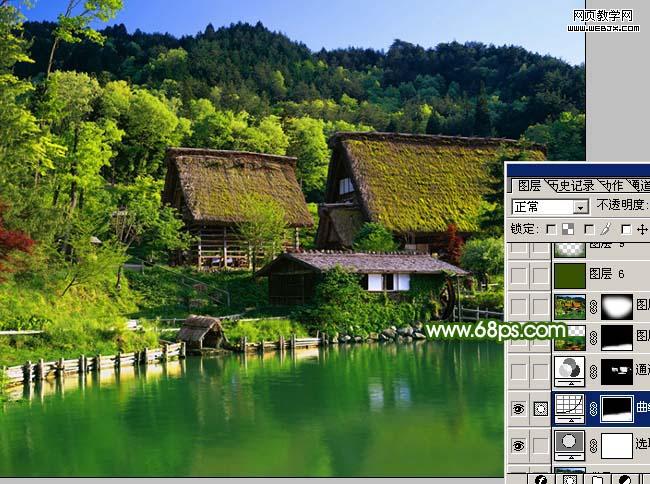 2、創建曲線調整圖層,參數設置如圖4,5,確定后加上圖層蒙版,只保留水面部分,其它部分用黑色畫筆擦掉,效果如圖6。