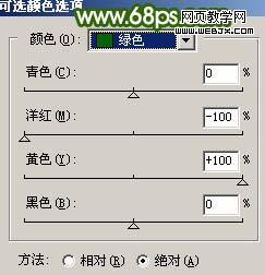1、打開原圖素材,創建可選顏色調整圖層,對黃色及綠色進行調整,參數設置如圖1,2,效果如圖3。
