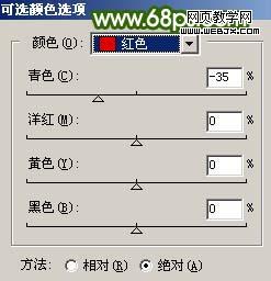 7、創建可選顏色調整圖層,對紅色及綠色進行調整,參數設置如圖14,15,效果如圖16。