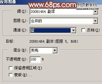 4、新建一個圖層,按ctrl + alt + shift + e 蓋印圖層,執行:圖像 > 應用圖像,參數設置如圖10,效果如圖11。