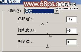 3、創建色相/飽和度調整圖層,參數設置如圖8,效果如圖9。