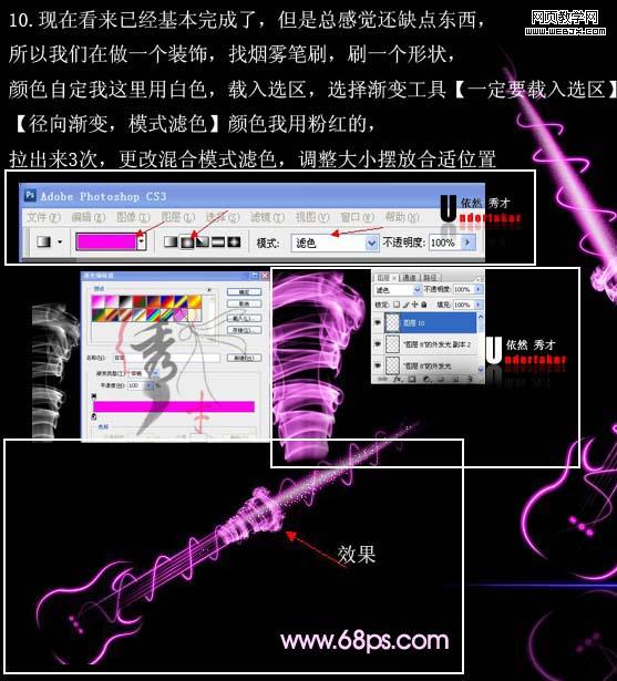 10、用煙霧筆刷做一個(gè)貝斯頭,拉漸變3次,擺放好合適位置。