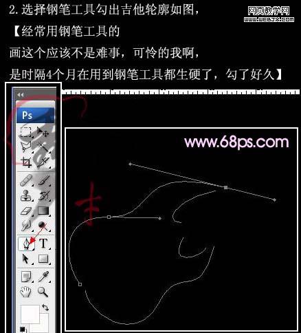 2、選擇鋼筆工具,畫出貝斯輪廓,和轉(zhuǎn)手繪差不多。