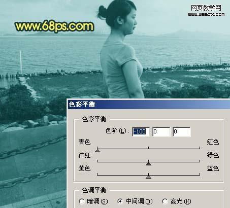4、新建一個圖層,蓋印圖層,按ctrl + shift + u 去色,按ctrl + b 調整色彩平衡,參數設置如圖5,確定后把圖層混合模式改為“顏色加深”,圖層不透明度改為:50%。