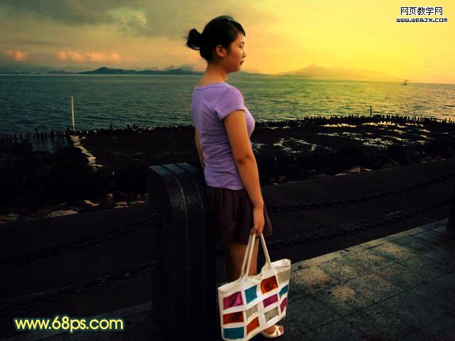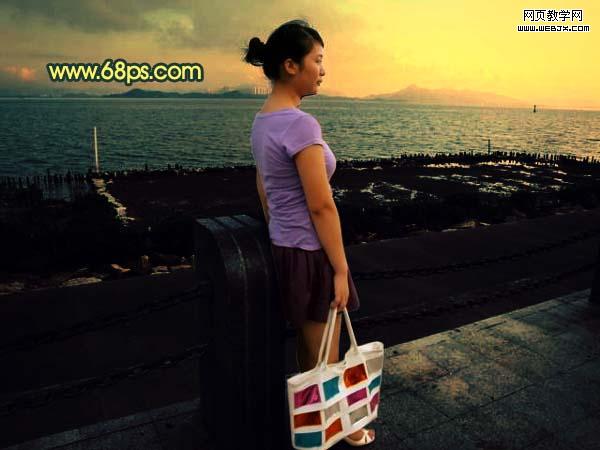 本教程的色調以暗黃為主,有點類似黃昏的效果。大致調色過程:先把圖片的整體色調壓暗,然后再把色調調成金色。人物部分可以分開來調。