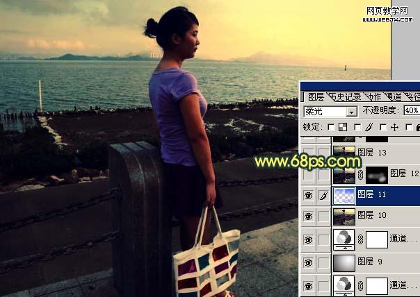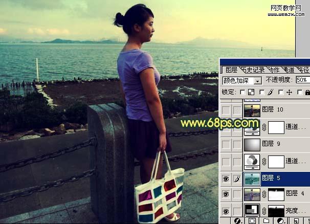 7、新建一個圖層,蓋印圖層,把圖層混合模式改為“正片疊底”,圖層不透明度改為:50%,效果如圖12。