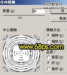 6、執(zhí)行:濾鏡 > 模糊 > 徑向模糊,參數(shù)設(shè)置如圖8,效果如圖9。